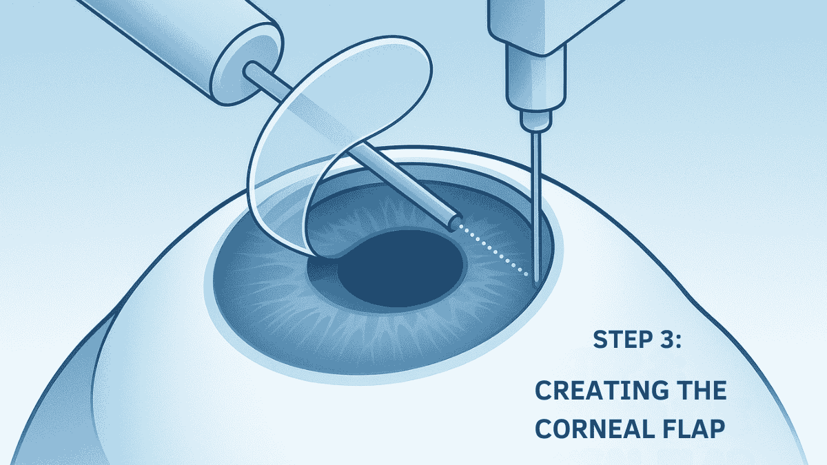 - A sophisticated instrument, either a femtosecond laser or a mechanical microkeratome, is used to create a very thin, precise flap in the outermost corneal tissue. This flap remains hinged to the eye.