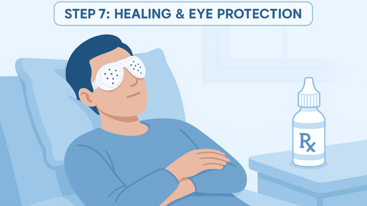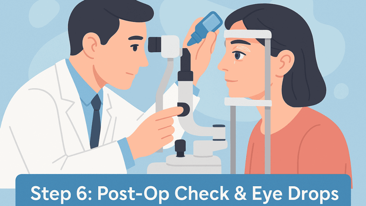 Your eye doctor performs a quick post-op check and applies protective drops to aid healing.